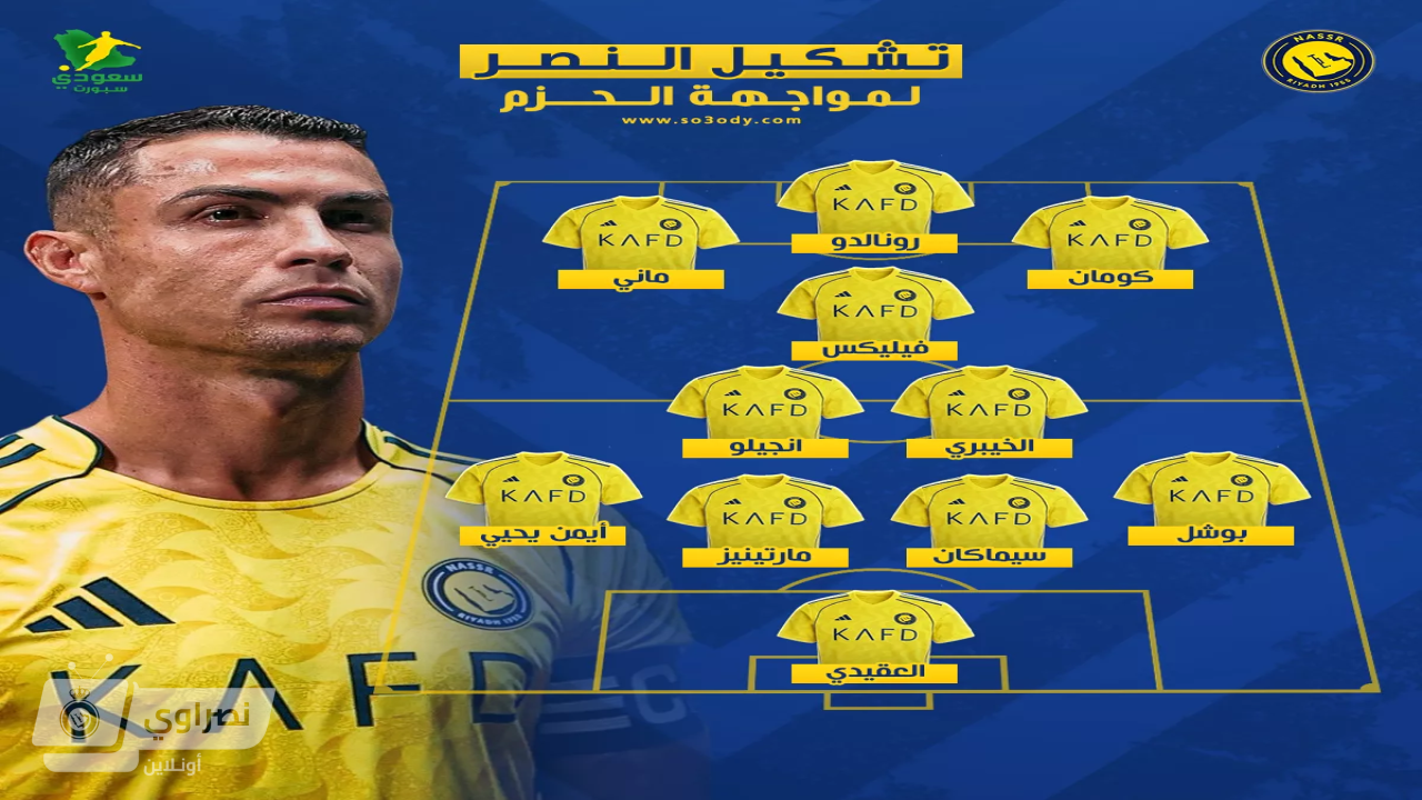 **التشكيلة الرسمية لنادي النصر في مواجهة الحزم**